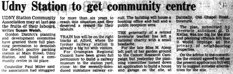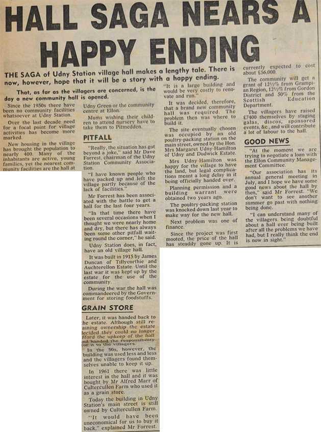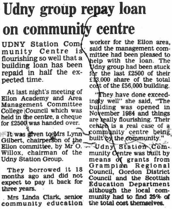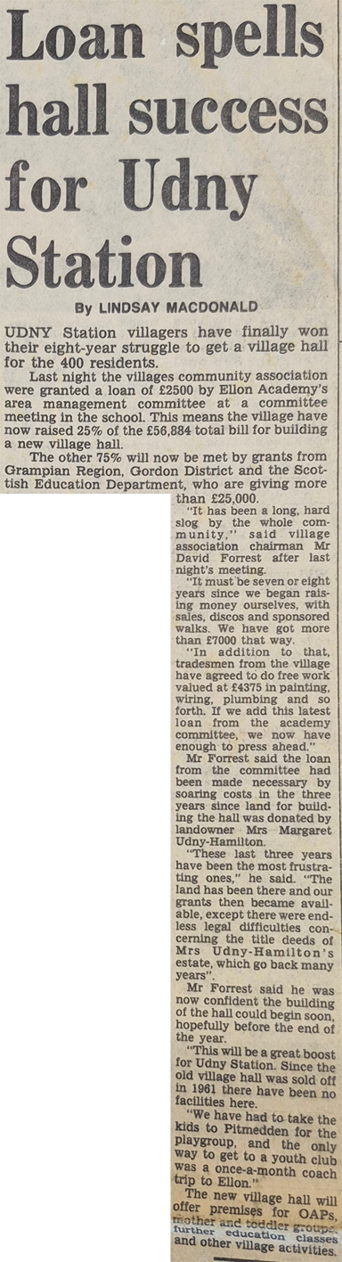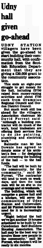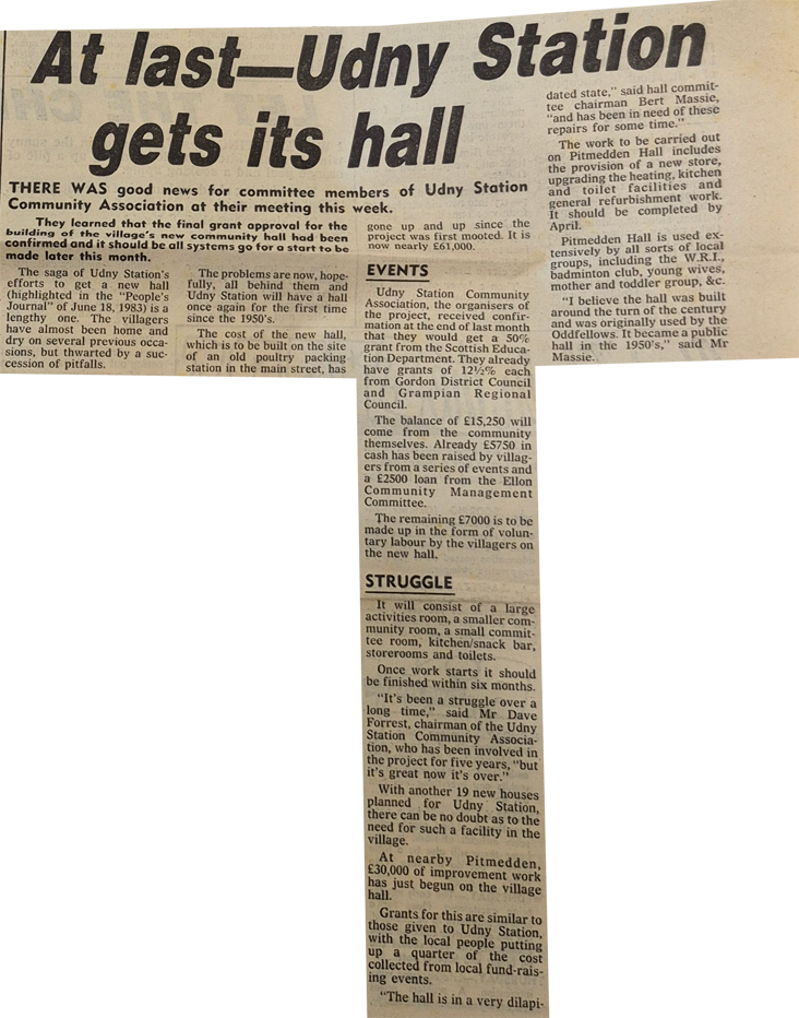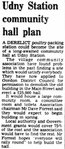 The building of the Community Centre appeared in the Press and Journal on various occasions. Click on the images for a larger image.