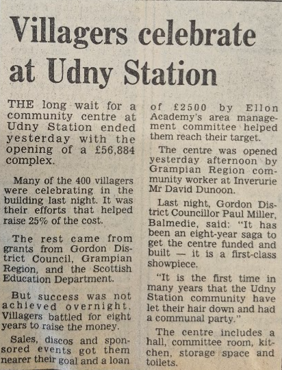 Opened on 16 December 1984, Udny Station Community Centre has grown with its community for four decades. To mark our 40th anniversary, this timeline highlights the practical projects—large and small—that have kept the hall welcoming, safe, and fit for the future.
